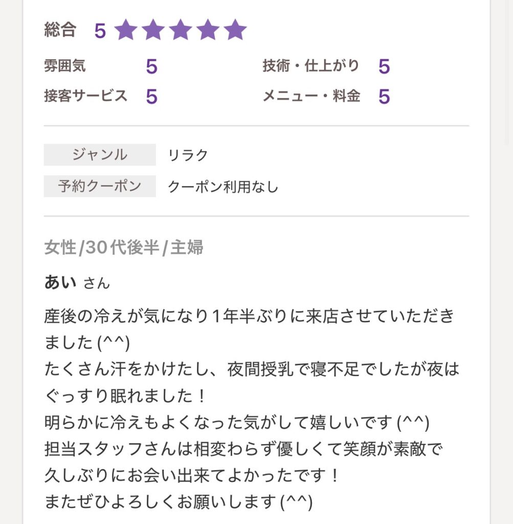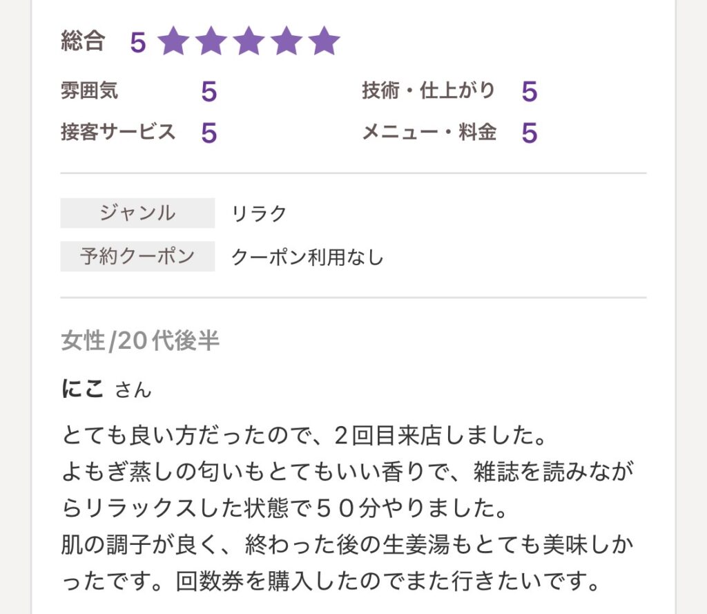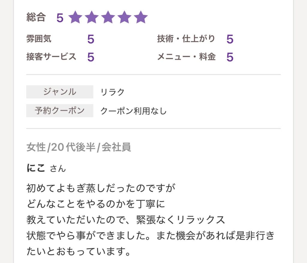 ご予約のお客さ間からの声を